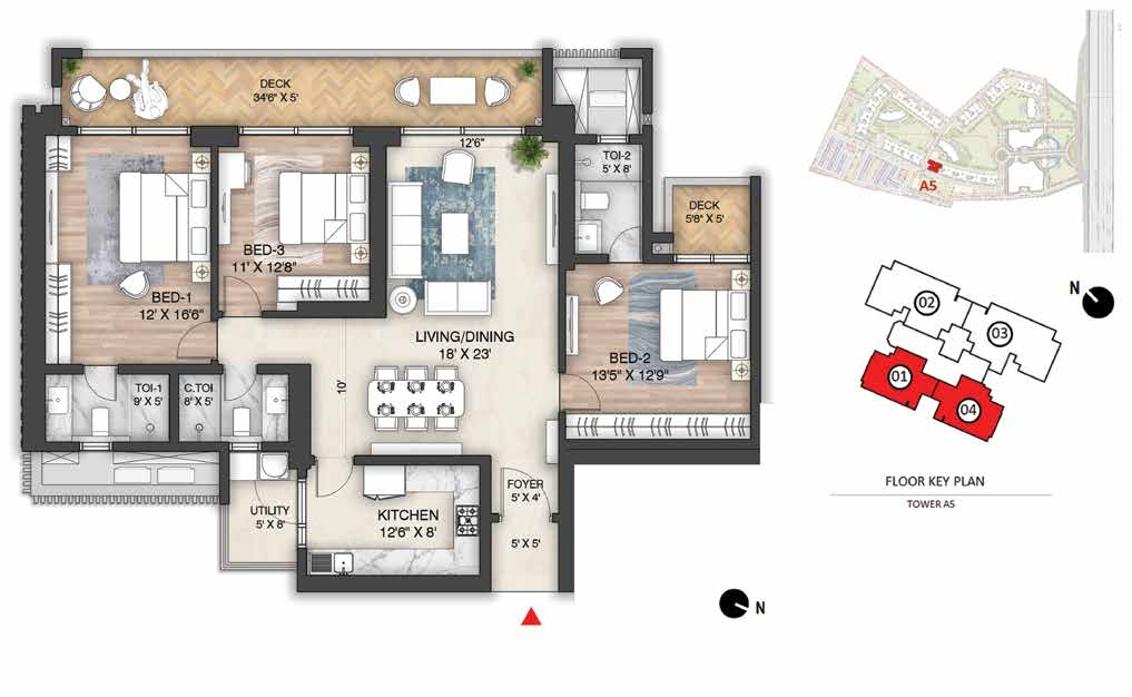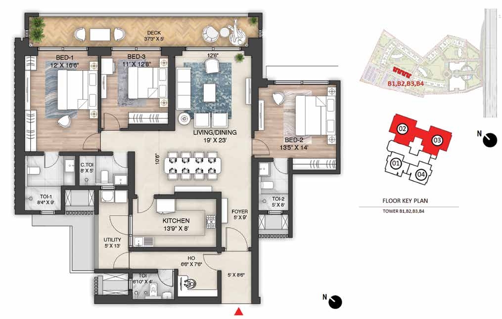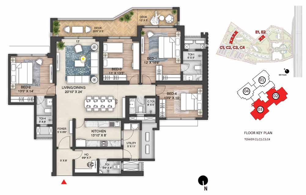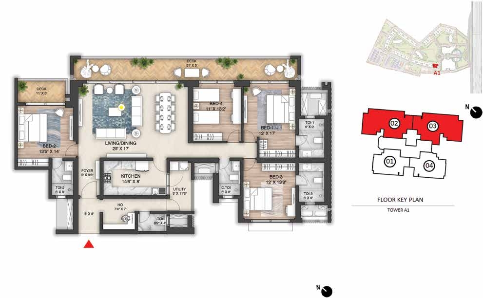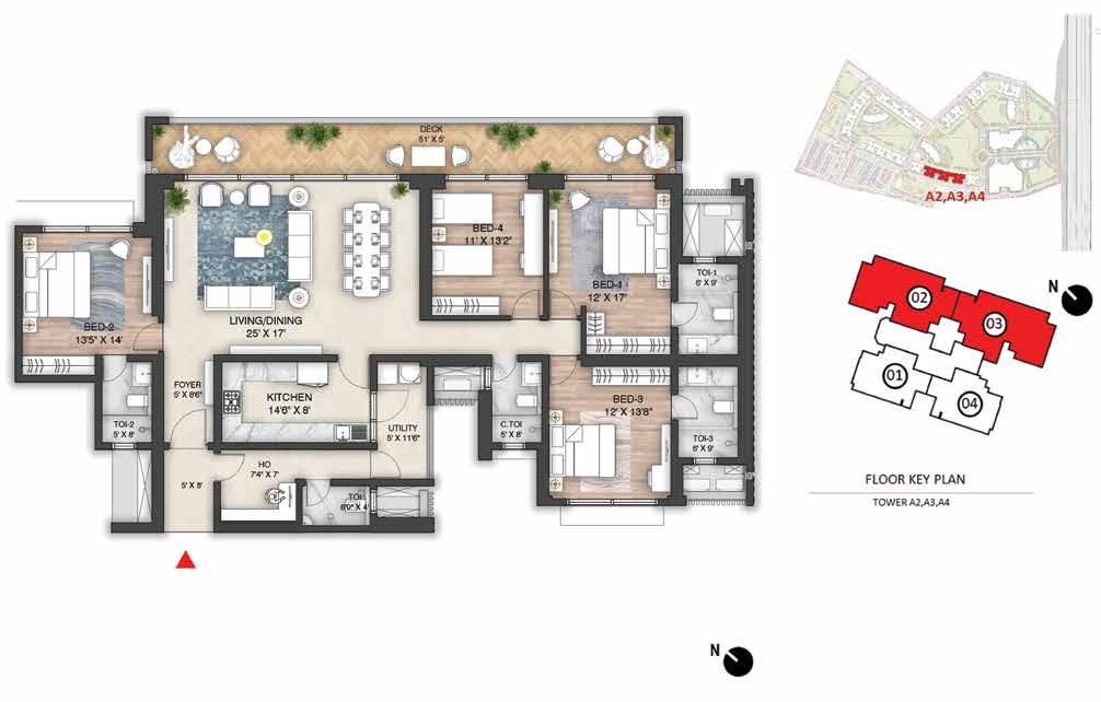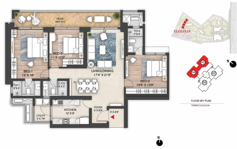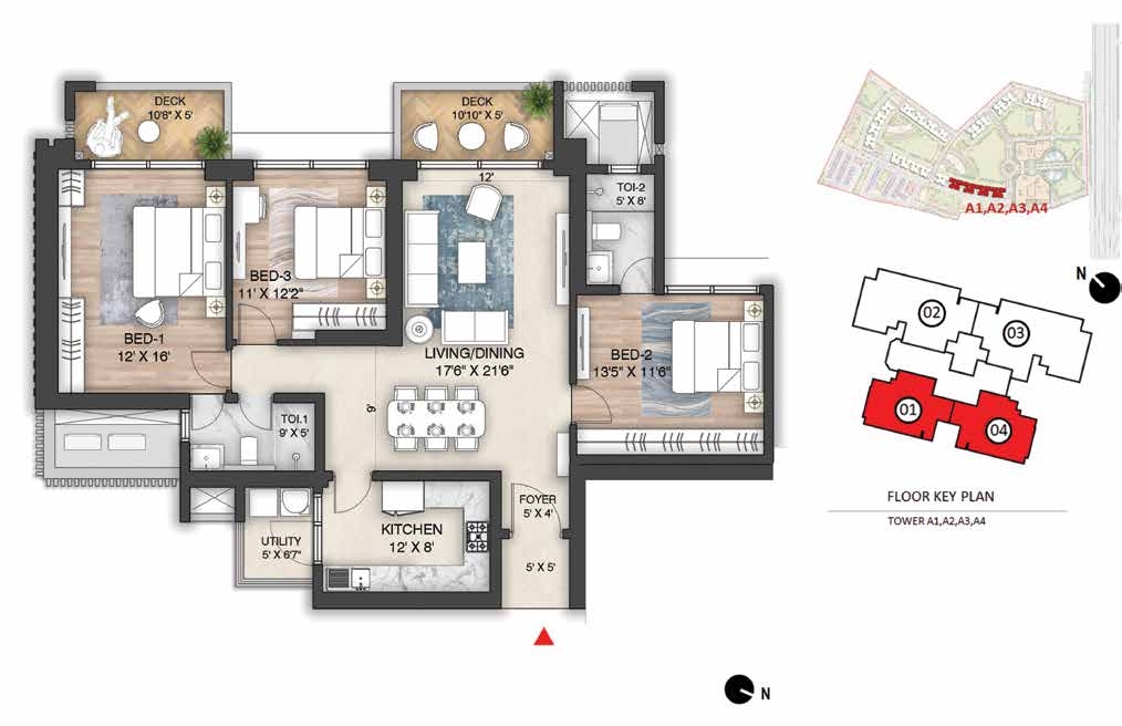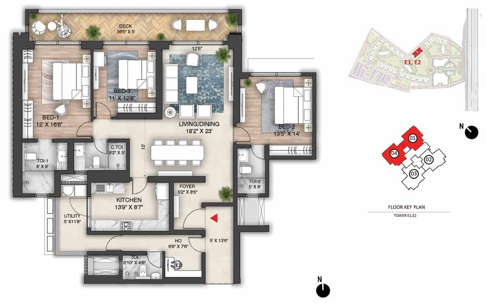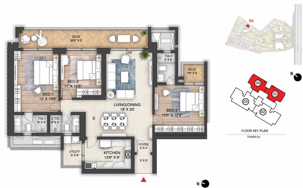 Amenities: Amphitheatre with Screening WallBasketball CourtBBQ AreaCCTV coverage at entry/exit pointsChess CourtChildren’s Play AreaClubhouse Entrance Plaza & Drop-off ZoneCo-working SpacesCommunity GardenConference RoomsCricket Practice PitchCycling TrackDigital Door LockJogging TrackLobby amenities (dry cleaningMeditation Zonemini-gymsMulti-purpose Ground (Football/Cricket)Multi-Themed GardensMultiple Clubhouses (Club Mulberry & Club Oakwood)multipurpose hall)Outdoor GymPadel CourtParty Lawn with Outdoor DiningPets ParkPower Backup for common areas (optional for homes)Private Deck in every apartmentReflexology ParkRock Climbing WallSecurity Cabins at all entrances/exitsSenior Citizens’ ParkSkating RinkSky WalkSun CourtSwimming Pool & Kids Pool with JacuzziTennis CourtTrampolineTree Housetuition centers with classroomsVideo Door PhonesWi-Fi Enabled Outdoor ZonesYoga Garden